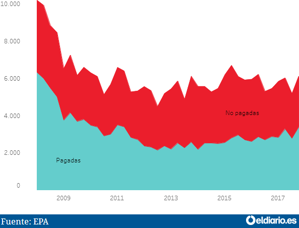 | Evolución número de Horas Extra que se realizan en España según estén pagadas o no |